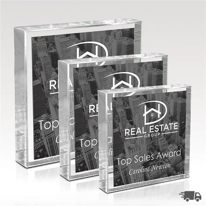 The Square Acrylic is like having a blank page so you can create exactly the look you desire. The 1" thick piece allows you to imprint both sides with your custom graphics and text.
